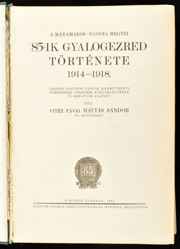 vitéz Pávai Mátyás Sándor: A Máramaros-Ugocsa megyei 85-ik gyalogezred... https://www.darabanth.com/en/442-Online-auction/442.0/Books/Books-Military~1000011/vitez-Pavai-Matyas-Sandor-A-Maramaros-Ugocsa-megyei-85-ik-gyalogezred-tortenete-1914-1918-~II2908231