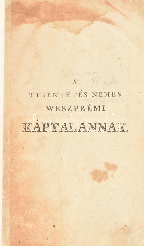 Háiszler György' orvosi munkája. Első darab : A' főbb hideglelésekről, a' pestisről, és a' hideglelős kiütésekről. [Weszprémben, 1801., Számmer Mihály' betűivel], 14+ 460 p. Átkötött egészbőr-kötés, a gerincen piros címkével, a címlap és az utolsó lap hiányzik, az utolsó két lap restaurált: az egyik sarkán kis hiánnyal, a másikon nagyméretű hiánnyal, néhány lapon gyűrődésnyommal, foltos lapokkal.