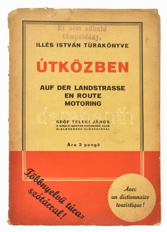 Illés István Túrakönyve. Útközben. Auf der Landstrasse en route motori... https://www.darabanth.com/en/442-Online-auction/442.0/Books/Books-Travelling-Local-History~1000007/Illes-Istvan-Turakonyve-Utkozben-Auf-der-Landstrasse-en-route-motoring-Grof-Teleki-Janos-~II2911743