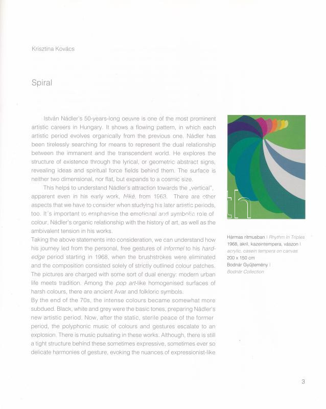 Kovács Krisztina, Kálmán Borbála (szerk.) Nádler István. Spirál. Bp., 2011, Várfok Galéria. 32 p. Nádler István festményeinek színes reprodukcióival gazdagon illusztrált kiállítási katalógus. Kiadói papírkötés, jó állapotban.