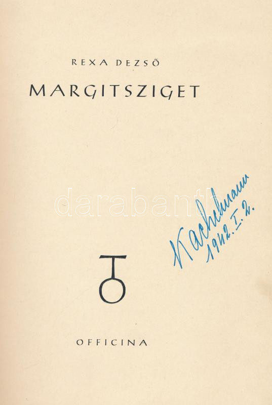 Rexa Dezső: Margitsziget. Bp., 1940, Officina, 110+1 p.+ 4 t. Szövegközti és egészoldalas fekete-fehér fotókkal, és egészoldalas színes táblákkal illusztrálva. Kiadói aranyozott egészélvászon-kötés, jó állapotban.