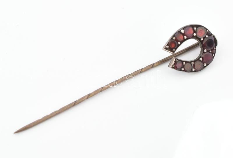 Ezüst (Ag) gránát köves, patkó formájú bross, bruttó: 1,7 g, h: 6 cm