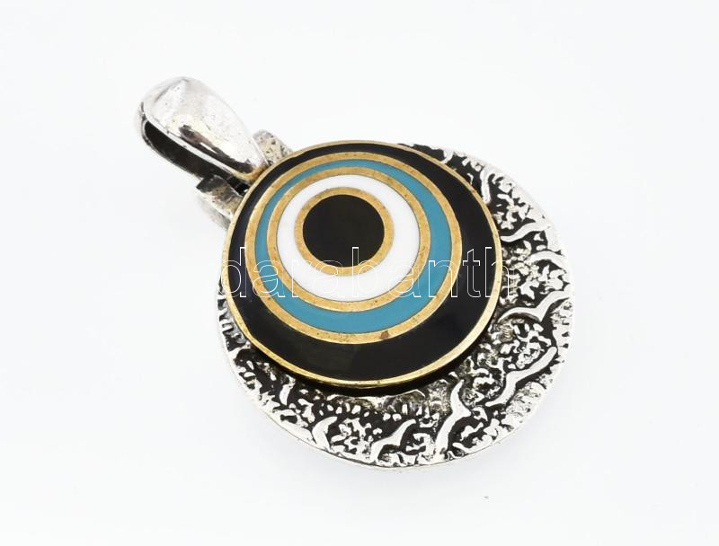 Ezüst (Ag) medál zománcozott díszítéssel, jelzett, d: 2 cm, bruttó: 4,1 g