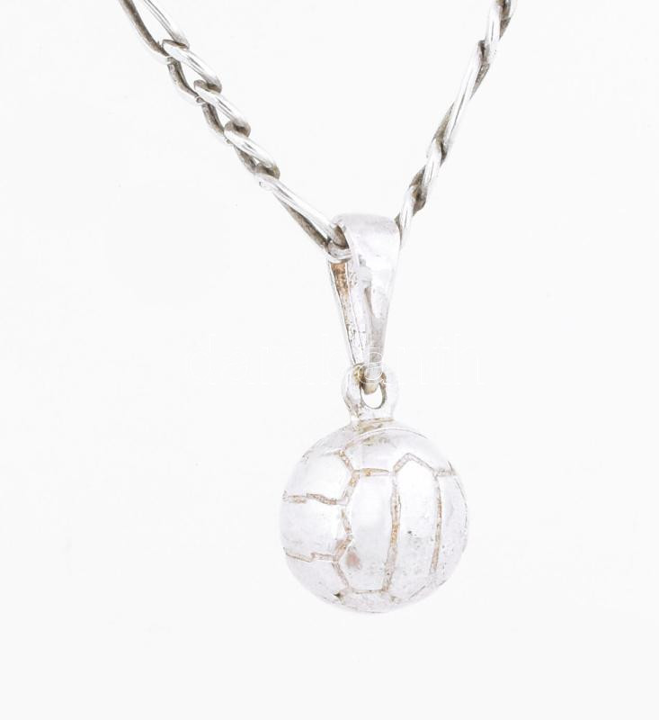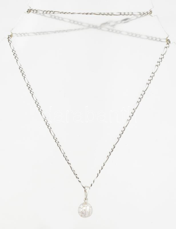 Ezüst(Ag) figaro nyaklánc focilabda függővel, jelzett, h: 46 cm, 1,6×0,8 cm, nettó: 5,6 g