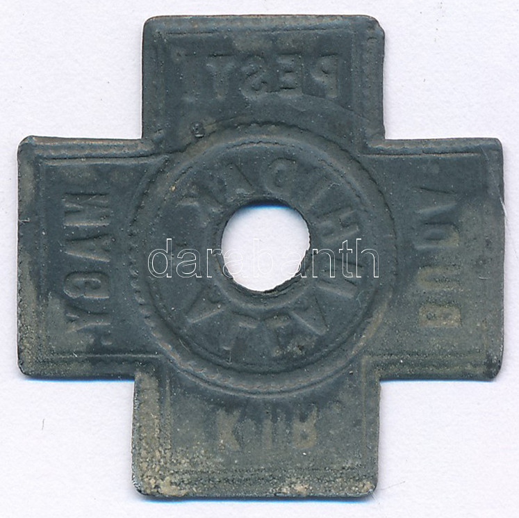 1896. "Magyar Királyi Budapesti Államhidak" kereszt alakú fém bárca T:XF patina
