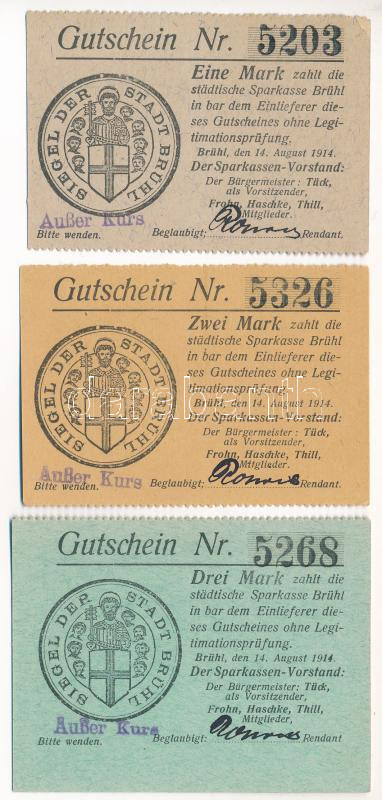 Németország / Weimari Köztársaság / Brühl 1914. 1M + 2M + 3M utalvány ...