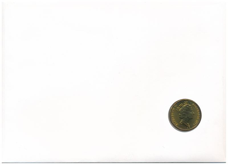 Australia 1994. 1 Dollar Al-Br coin in envelope with stamp, first day cancellation and a prospectus in german C:UNC