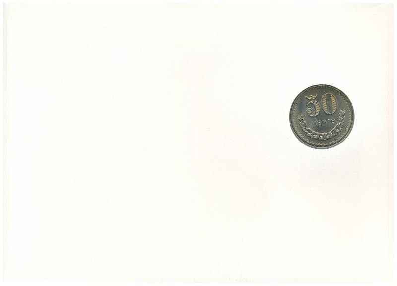 Mongólia 1981. 50M Cu-Ni felbélyegzett borítékban, bélyegzéssel, német... https://www.darabanth.com/en/442-Online-auction/442.0/Numismatics/Envelopes-with-Coins-and-Banknotes~1500004/Mongolia-1981-50M-Cu-Ni-felbelyegzett-boritekban-belyegzessel-nemet-nyelvu-leirassal-T~II2908737