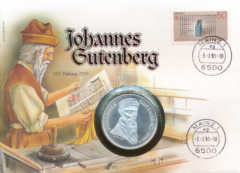 Németország 1993. "Johannes Gutenberg halálának 525. évfordulója&... https://www.darabanth.com/en/442-Online-auction/442.0/Numismatics/Envelopes-with-Coins-and-Banknotes~1500004/Nemetorszag-1993-Johannes-Gutenberg-halalanak-525-evforduloja-ketoldalas-jelzett-Ag-emle~II2909062