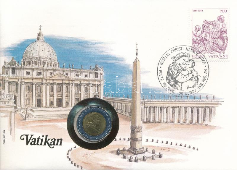 Vatikán 1982. 500L bimetál "II. János Pál" felbélyegzett bor... https://www.darabanth.com/en/442-Online-auction/442.0/Numismatics/Envelopes-with-Coins-and-Banknotes~1500004/Vatikan-1982-500L-bimetal-II-Janos-Pal-felbelyegzett-boritekban-belyegzessel-nemet-n~II2900910