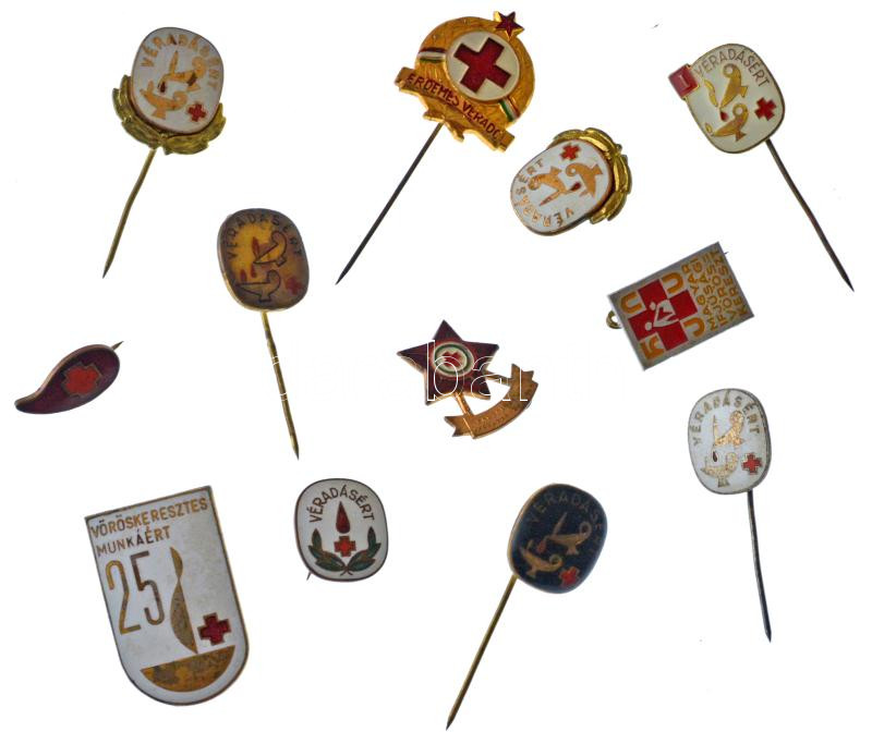 ~1970-1980. 12db vegyes zománcozott és műgyantás véradó kitűző, jelvény T:AU,XF