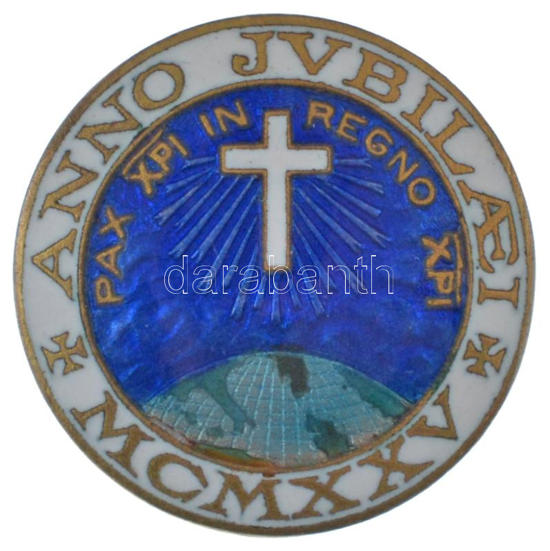 Olaszország 1925. "Anno Jubilaei MCMXXV" zománcozott Br jelv... https://www.darabanth.com/en/442-Online-auction/442.0/Numismatics/Faleristics-medals-orders-badges~1500019/Olaszorszag-1925-Anno-Jubilaei-MCMXXV-zomancozott-Br-jelveny-hatoldalan-Stab-G-Bregonzio~II2632592