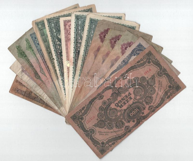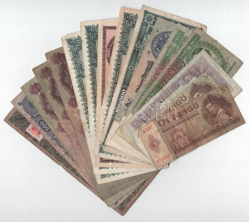 16db-os vegyes pengő bankjegy tétel, közte 1944. 5P "A Vöröshadse...