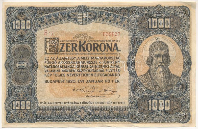 https://www.darabanth.com/en/442-Online-auction/442.0/Numismatics/Hungarian-Banknotes~1500007/1920-1000K-Orell-Fussli-Zurich-nyomdahely-jelolessel-B-17-839037-TF--Adamo-K36~II2906690