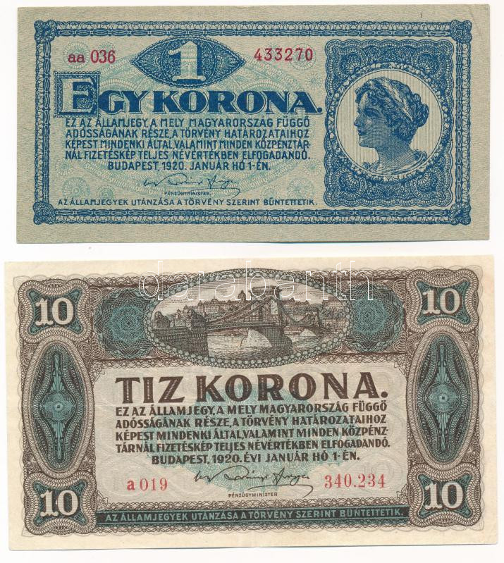 https://www.darabanth.com/en/442-Online-auction/442.0/Numismatics/Hungarian-Banknotes~1500007/1920-1K-plus-10K-TVF-F~II2907300
