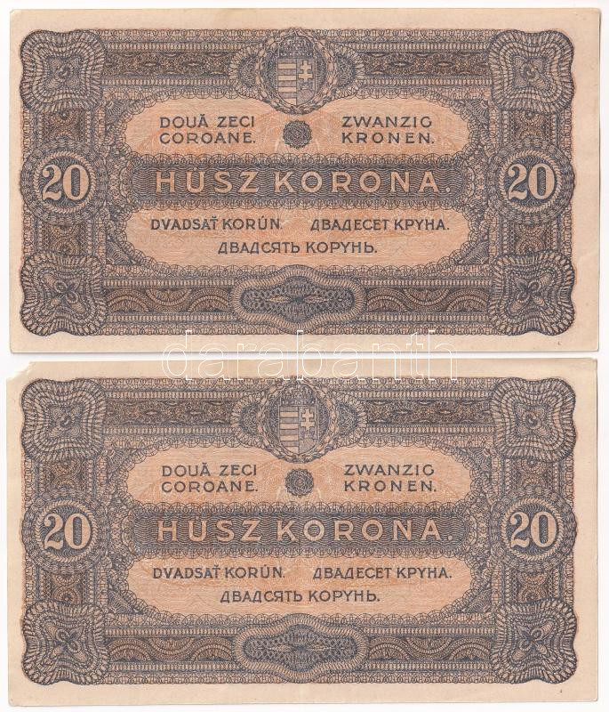 https://www.darabanth.com/en/442-Online-auction/442.0/Numismatics/Hungarian-Banknotes~1500007/1920-20K-2x-sorszamkovetok-TAU-VF-egyik-sarokhiannyal-Adamo-K21~II2911869
