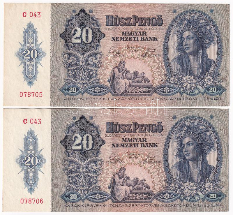 1941. 20P (2x) sorszámkövetők "C 043 078705 - C 043 078706" ...