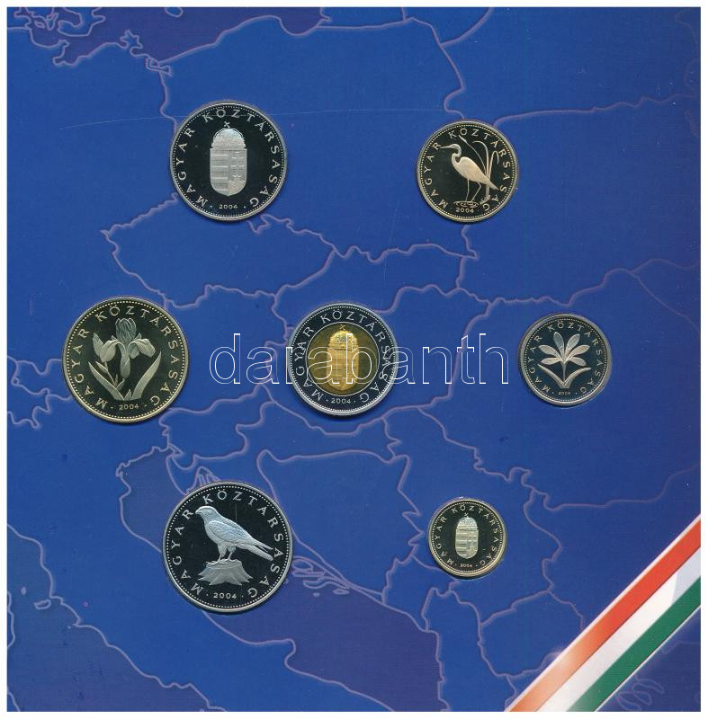 2004. 1Ft-100Ft (8xklf) forgalmi sor szettben, benne 2004. 50Ft "Magyarország az EU tagja" T:PP kis patina, belső tokon a ragasztás részben elengedett Adamo FO38.1