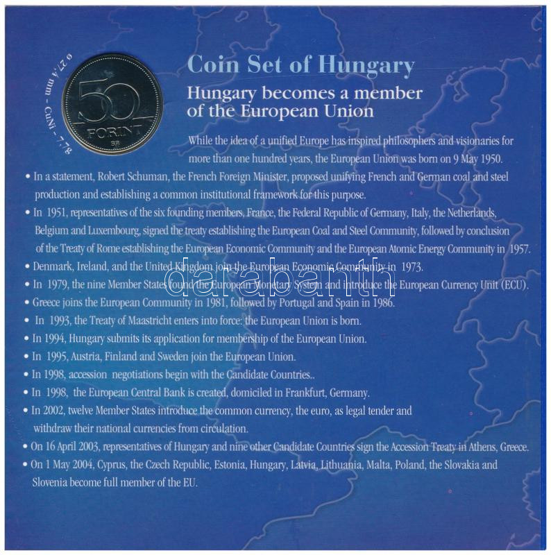 2004. 1Ft-100Ft (8xklf) forgalmi sor szettben, benne 2004. 50Ft "Magyarország az EU tagja" forgalmi emlékérme T:BU Adamo FO38