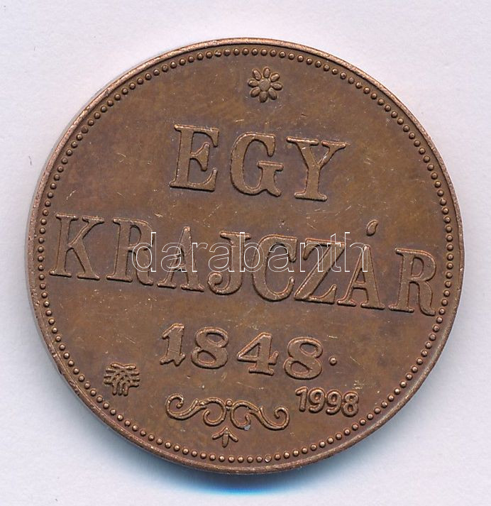 https://www.darabanth.com/en/442-Online-auction/442.0/Numismatics/Hungarian-coins-and-coins-with-Hungarian-mint-marks~1500008/1848KB-1Kr-Cu-1998-as-jubileumi-utanveret-restrike-TAU-XF~II2896728