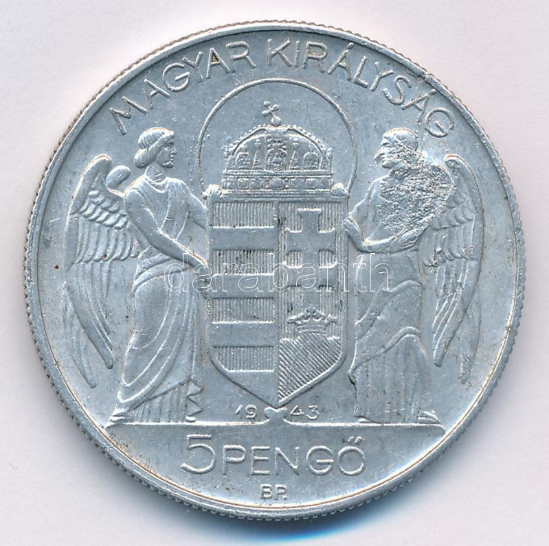 https://www.darabanth.com/en/442-Online-auction/442.0/Numismatics/Hungarian-coins-and-coins-with-Hungarian-mint-marks~1500008/1943-5P-Al-Horthy-Miklos-szuletesenek-75-evfordulojara-hamis-sarlo-kalapacs-ellenjeggye~II2908673