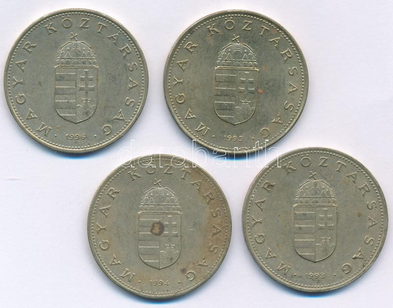 https://www.darabanth.com/en/442-Online-auction/442.0/Numismatics/Hungarian-coins-and-coins-with-Hungarian-mint-marks~1500008/1993-1996-100Ft-Cu-Ni-Zn-4xklf-TXF-VF-patina~II2908997