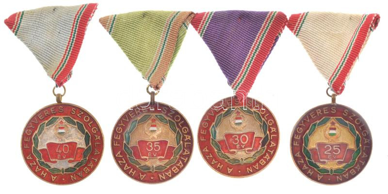 1965. "Szolgálati Érdemérem - A Haza Fegyveres Szolgálatában 25, 30, 35,40 év" (4xklf) zománcozott kitüntetések mellszalagon, szalagsávokkal, T:1-
