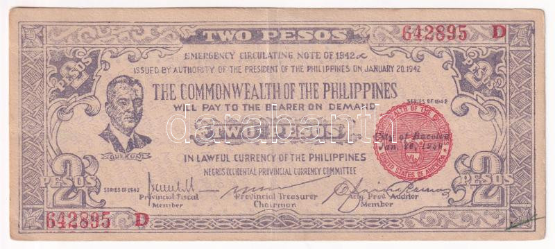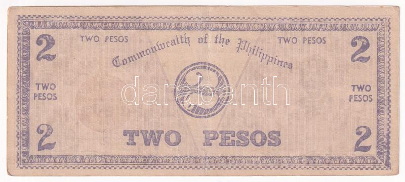 Fülöp-szigetek 1942. 2P "642895 D" T:F kis tollvonás az egyi... https://www.darabanth.com/en/442-Online-auction/442.0/Numismatics/Worldwide-banknotes~1500014/Fulop-szigetek-1942-2P-642895-D-TF-kis-tollvonas-az-egyik-sarkan-Philippines-1942-2-Pesos-~II2912079