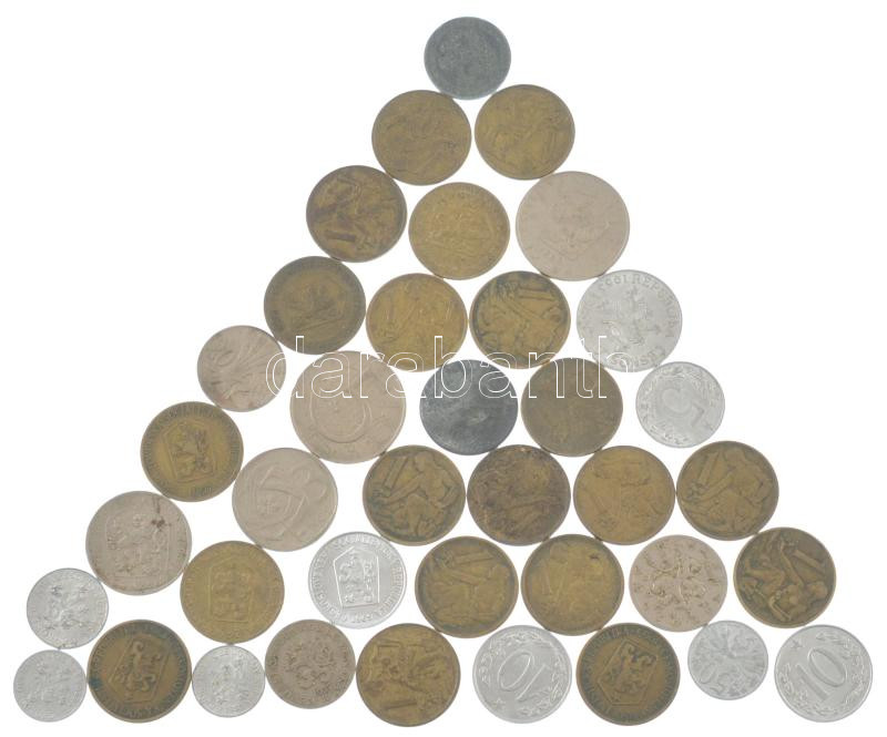 Czehoslovakia 1931-1982. 1 Haléř - 5 Korún (36pcs, 33xdiff) + Protectorate of Bohemia and Moravia 1940. 20 Haléřů Zn + 1941. 50 Haléřů Zn C:mixed