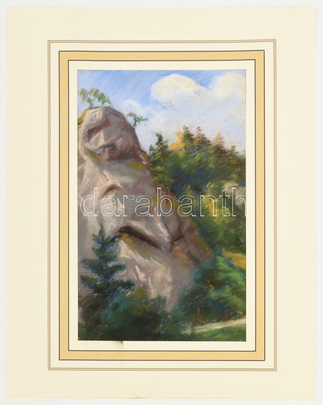Bertalan Rózsa (1900-1987): Sziklás táj. Pasztell, papír, jelezve jobbra lent, 30x21 cm. Paszpartuban.