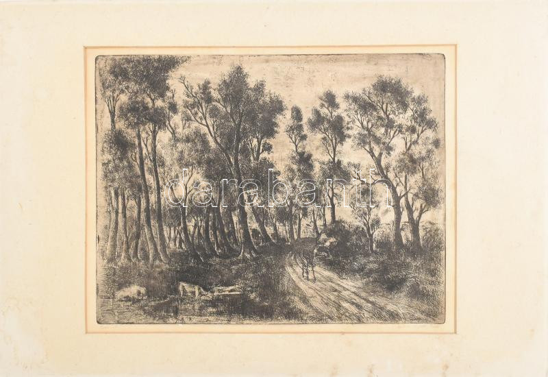 Böhm Lipót "Poldi" (1916-1995): Erdei út. Rézkarc, papír, je...