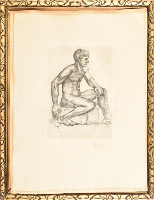 Józsa Sándor (1910-1989): Férfi akt. Rézkarc, papír, jelezve jobbra le...