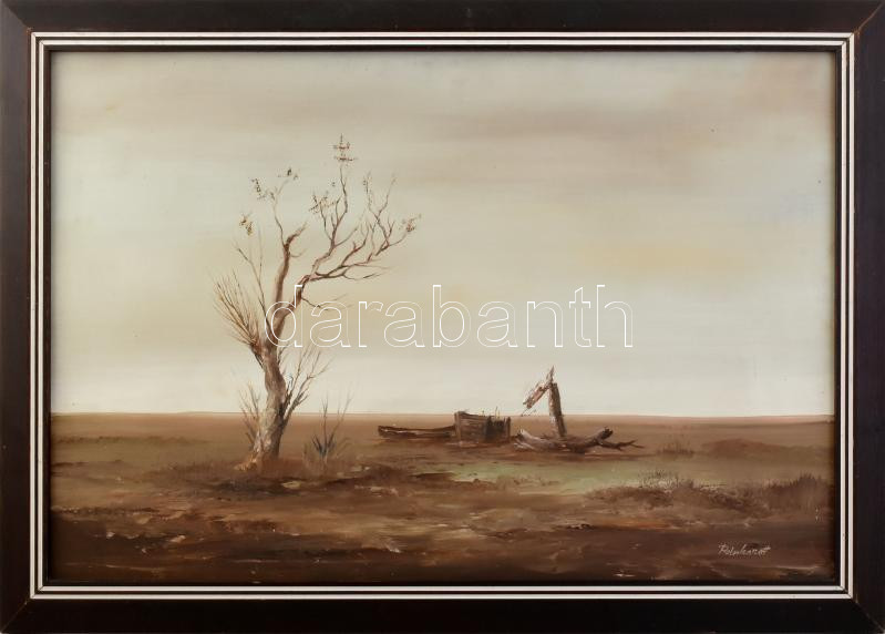 Reinhardt István (1936 - ): Halott kút . Olaj, farost. Fakeretben, jel...