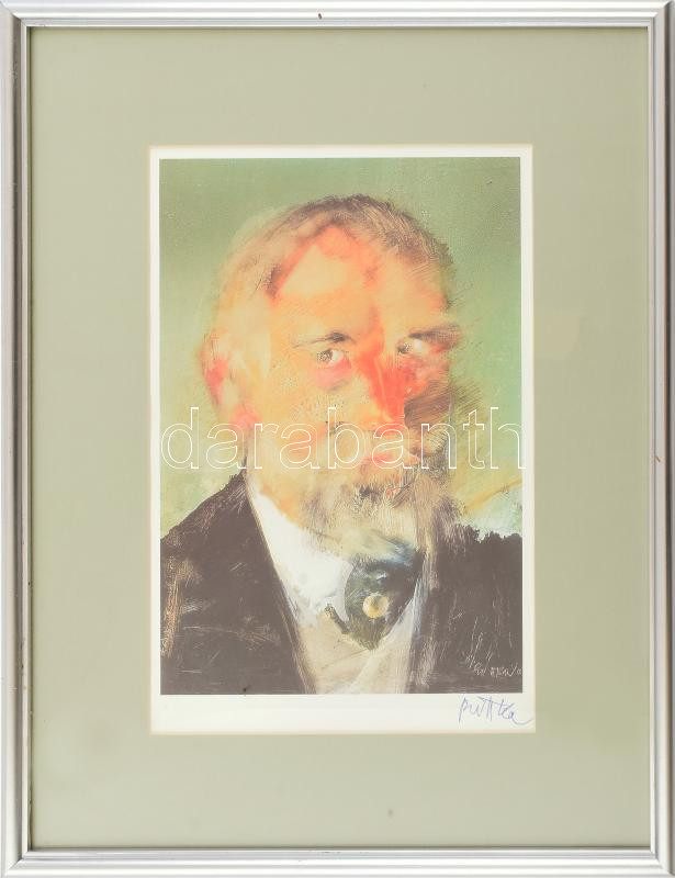 Ruttka Ferenc (1926-2019) : Arckép. Nyomat, Jelzett. Üvegezett keretbe...