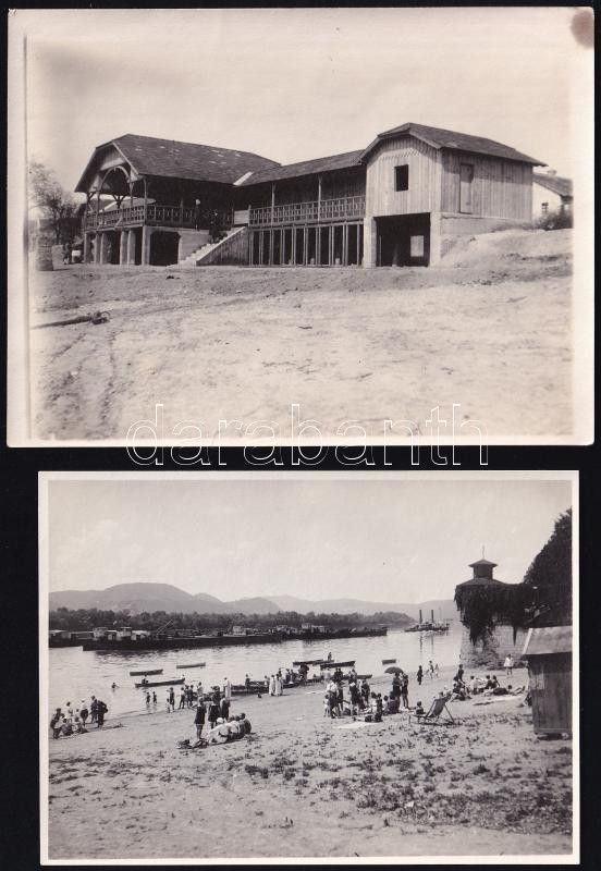 1925-1928 Strandélet Nógrádverőcén és az új strandépület, 2 db hátoldalon feliratozott fotó, 8,5×12 cm