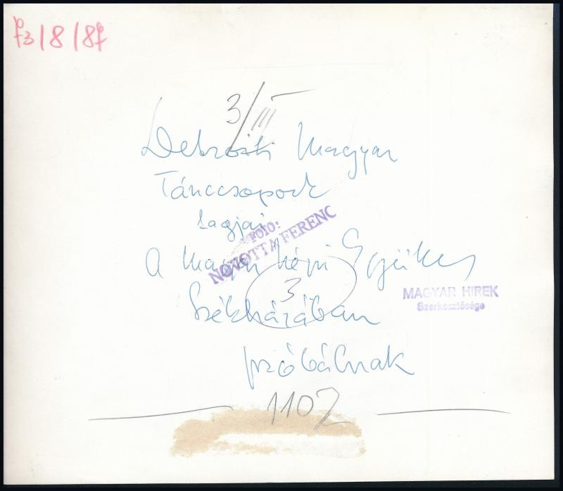 1973 Detroiti magyar tánccsoport próbája, 2 db sajtófotó, a hátoldalon... https://www.darabanth.com/en/442-Online-auction/442.0/Photography/Photo~500024/1973-Detroiti-magyar-tanccsoport-probaja-2-db-sajtofoto-a-hatoldalon-feliratozott-pecsette~II2879233
