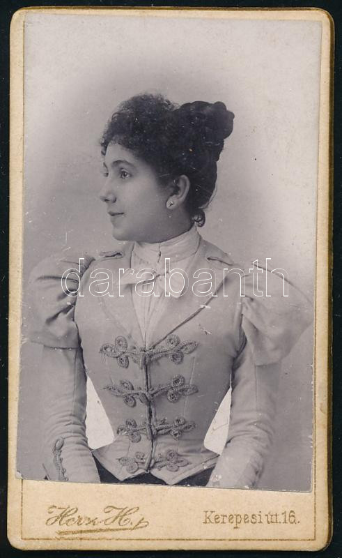 cca 1893 Női portré, keményhátú mignon fotó Herz budapesti műterméből,...
