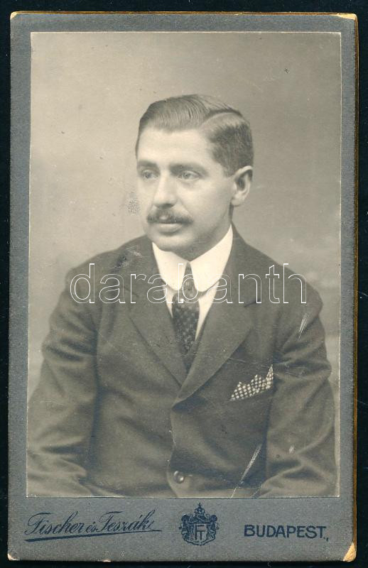 cca 1910 Férfiportré, keményhátú fotó Fischer és Teszák budapesti műte...