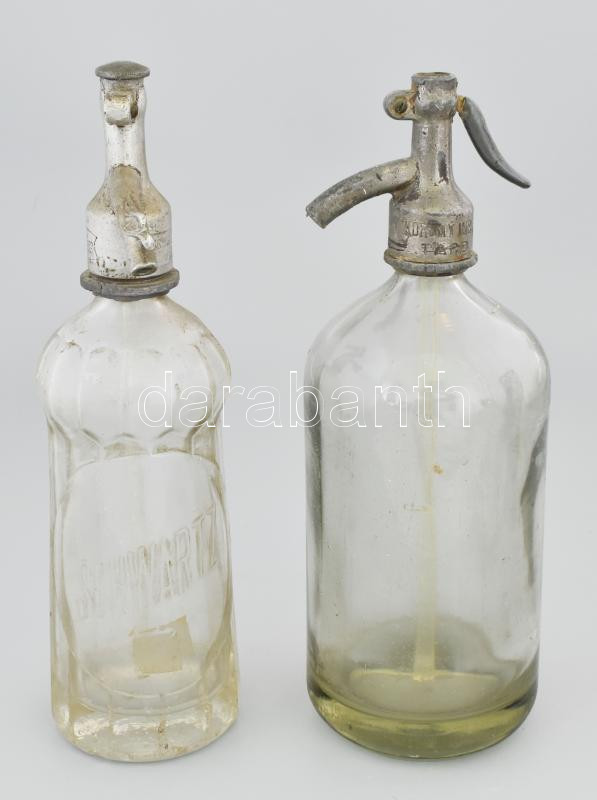 2 db régi szódás, szikvízes üveg: Kont Oszkár, Schwartz feliratokkal
