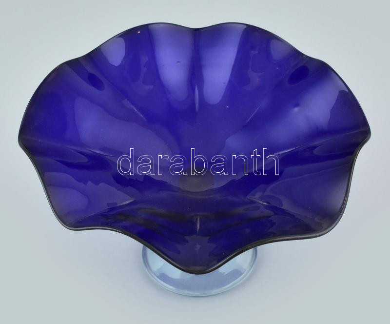Kék üveg, talpas kínáló tál. d: 26 cm. Hibátlan.