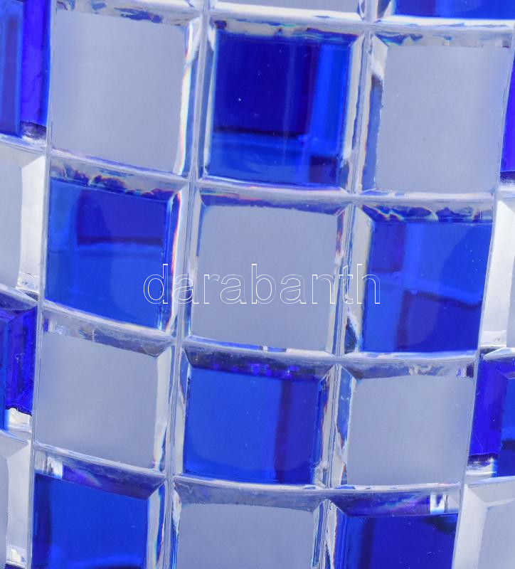 Monumentális Ajka, sakktábla mintás, királykék, ólomkristály váza, jel...