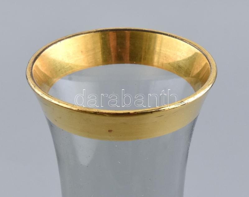 Retro üvegváza, anyagában halványan színezett, aranyozott, jelzés nélkül, m: 29 cm
