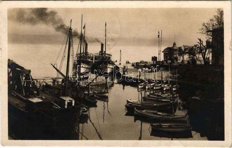1929 Lovran, Laurana; Porto / port, steamships, boats (kis szakadás / ...