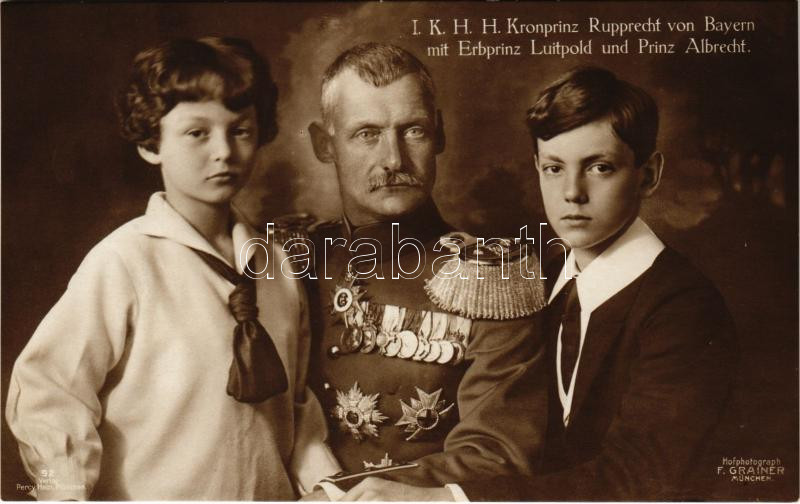 I.K.H. H. Kronprinz Rupprecht von Bayern mit Erbprinz Luitpold und Prinz Albrecht. Hofphotograph F. Grainer, München