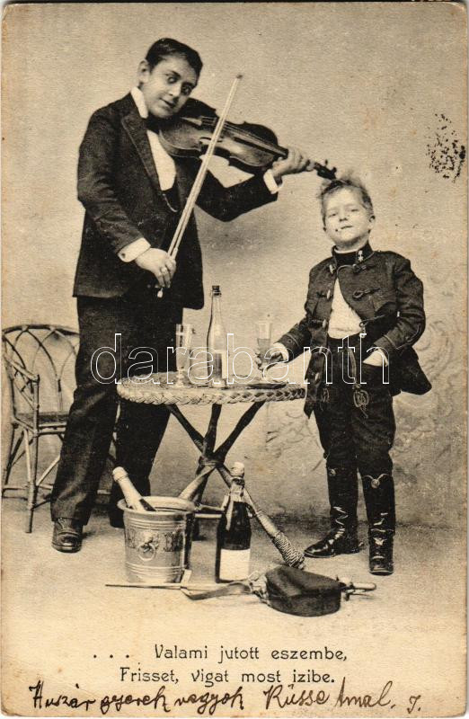 1903Valami jutott eszembe, Frisset, vígat most izibe. Cigány muzsikus ... https://www.darabanth.com/en/442-Online-auction/442.0/Postcards/Folklore~2000074/1903Valami-jutott-eszembe-Frisset-vigat-most-izibe-Cigany-muzsikus-es-katona-gyerek-pezsgovel~II2914336