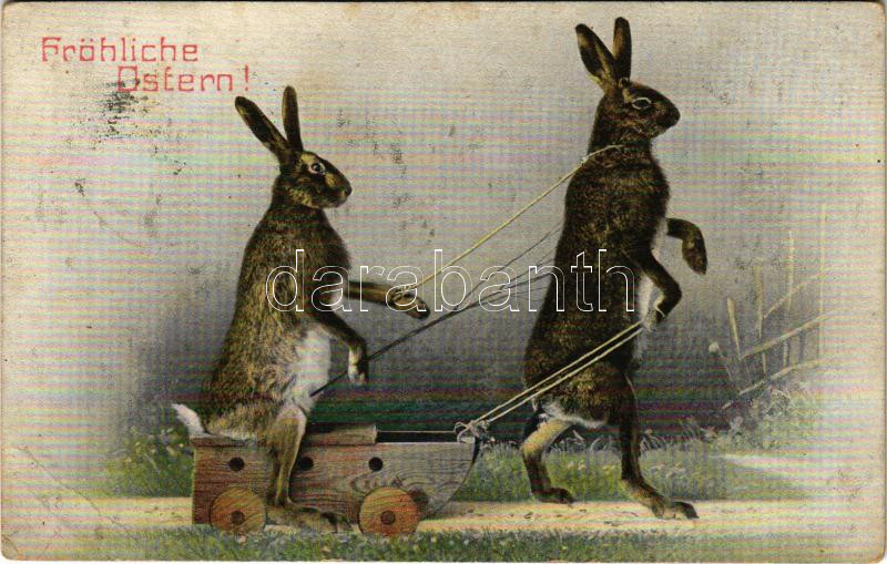 1907 Fröhliche Ostern! / Easter greeting art postcard, rabbits (EB)