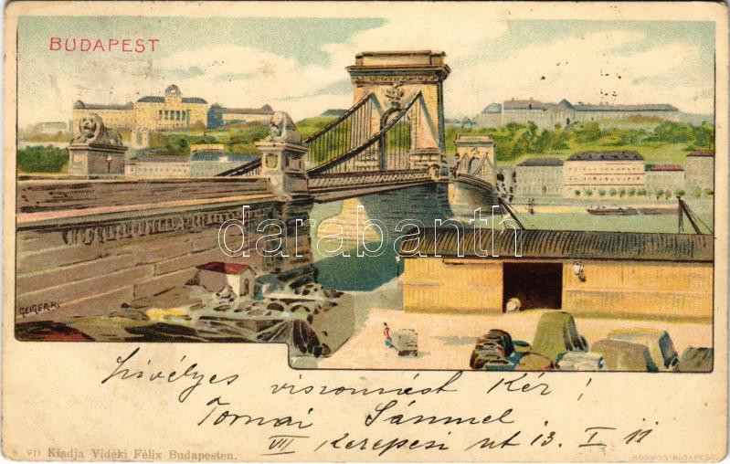 1900 Budapest, Lánchíd. Vidéki Félix kiadása, Kosmos S. VII. Art Nouveau litho (Rb)