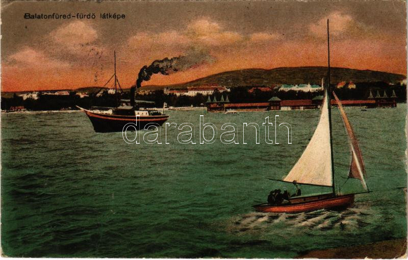 1920 Balatonfüred, látkép, gőzhajó (EK)