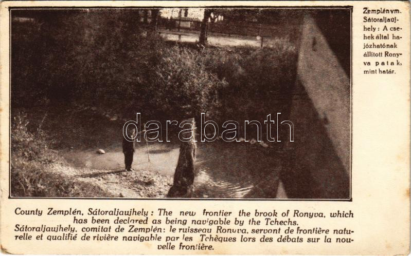 Description: Magyarország trianoni lehetetlen határáról. Zemplén vm. Sátoraljaújhely: a csehek által hajózhatónak állított Ronyva patak, mint határ. Magyar Nemzeti Szövetség kiadása / The impossible borders of Hungary after Trianon, irredenta propaganda (EK)