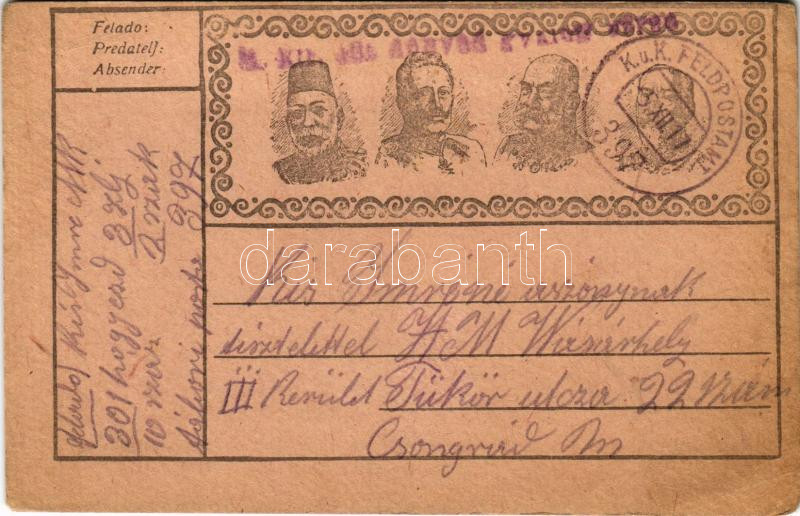 1917 Első világháborús tábori postai levelezőlap a Központi Hatalmak u... https://www.darabanth.com/en/442-Online-auction/442.0/Postcards/Militaria~2000084/1917-Elso-vilaghaborus-tabori-postai-levelezolap-a-Kozponti-Hatalmak-uralkodoival-V-Mehmed~II2907284